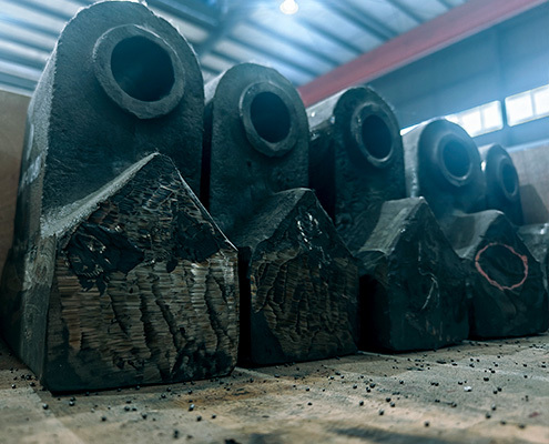 ????????????????????????????破碎錘(錘頭)是錘式破碎機決定破碎效率和成本的關(guān)鍵部件,選擇合適的材質(zhì)和類型可大幅提高生產(chǎn)效率,降低維護(hù)成本。長沙上為根據(jù)客戶破碎機型號、物料特性和運行工況合理選擇合適的材質(zhì)與生產(chǎn)工藝,可最大化設(shè)備使用壽命,降低用戶的生產(chǎn)成本。